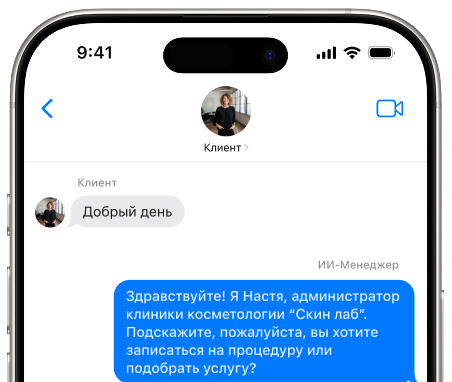 Пока менеджер занят или не отвечает, ИИ уже ведёт диалог с клиентом: